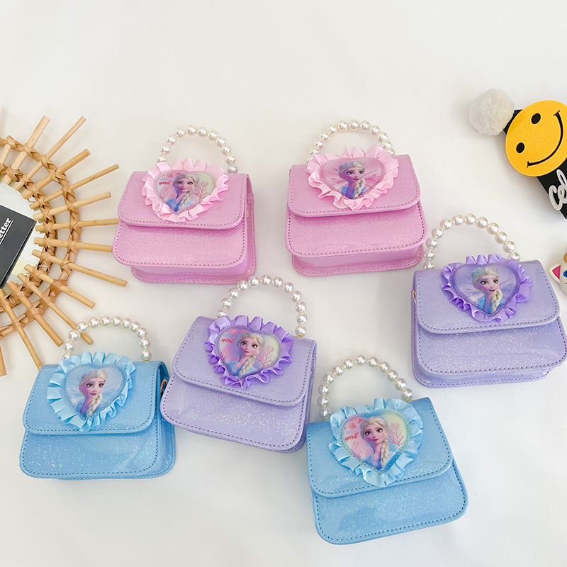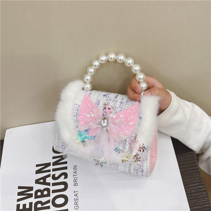 2022新型子供ショルダーバッグファッション真珠手提げ点灯雪氷小王女韓国版レース斜めショルダーバッグ