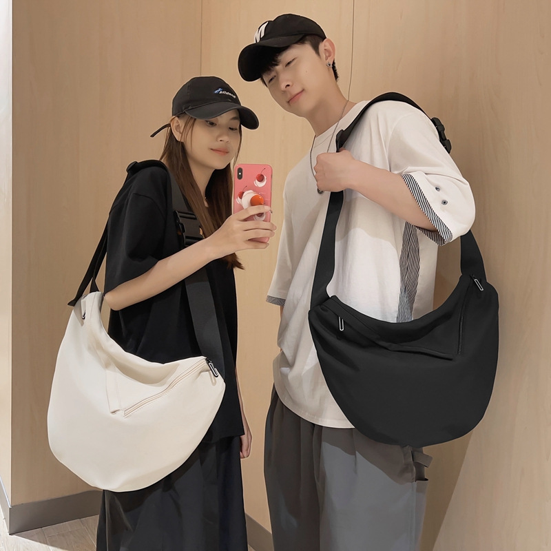 2023新型女性キャンバスバッグシンプル純色日韓大容量餃子バッグ学生補習クロスボーダーショルダーバッグ