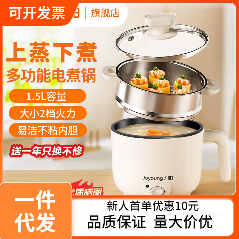 九陽電気鍋 寮生用麺調理鍋 蒸し調理一体型多機能鍋 家庭用小型麺調理蒸し鍋