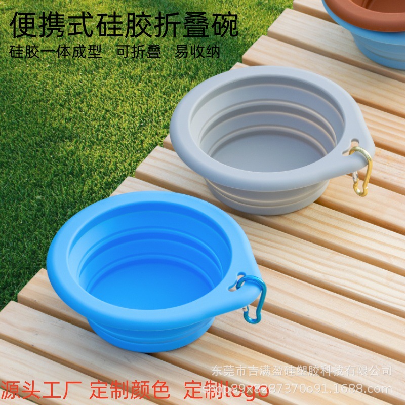 国境を越えたポータブルシリコン折りたたみボウル、ペットボウル、猫ボウル、飲料水と餌やりボウル、屋外用吊り下げ式ペット犬ボウル