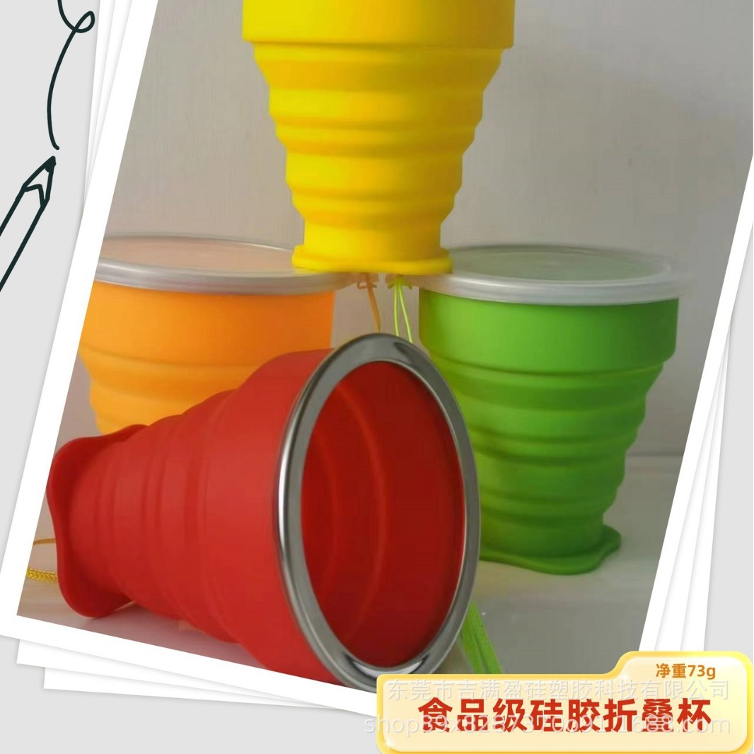 屋外ポータブル折り畳みカップ旅行折り畳みシリコンカップ自宅出張随行カップ蓋付き旅行カップ