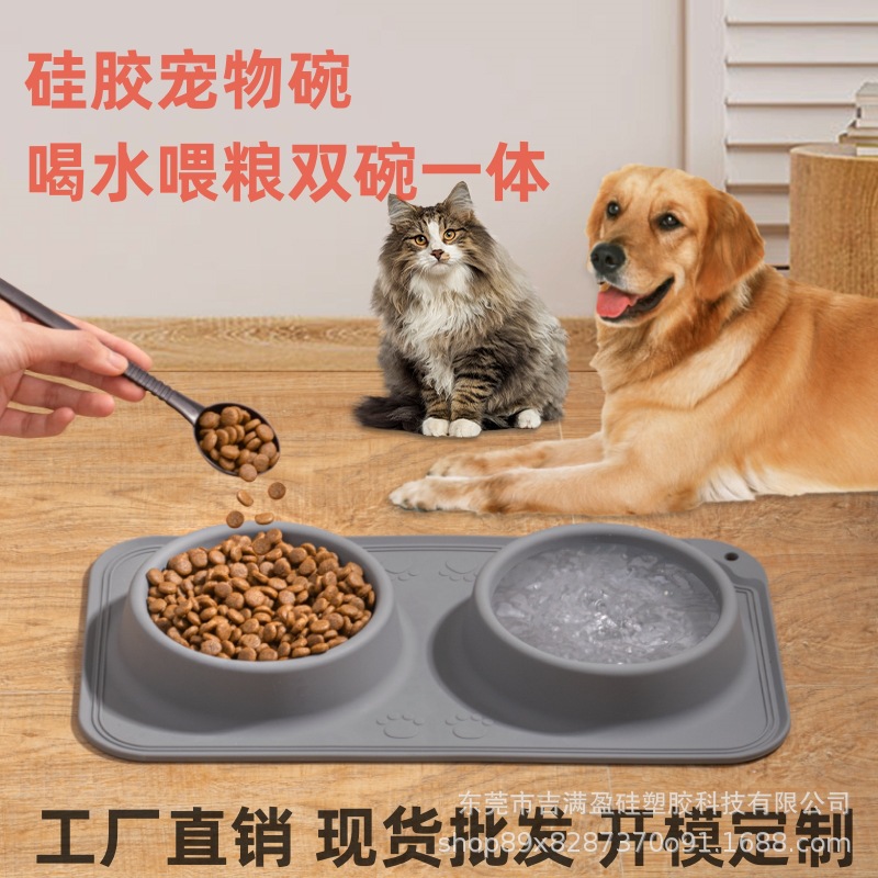 ペット用シリコン製給餌ボウル 猫犬兼用 水飲み・給餌一体型 ダブルボウル 漏れ防止 犬用ボウル ペット用品 給餌皿