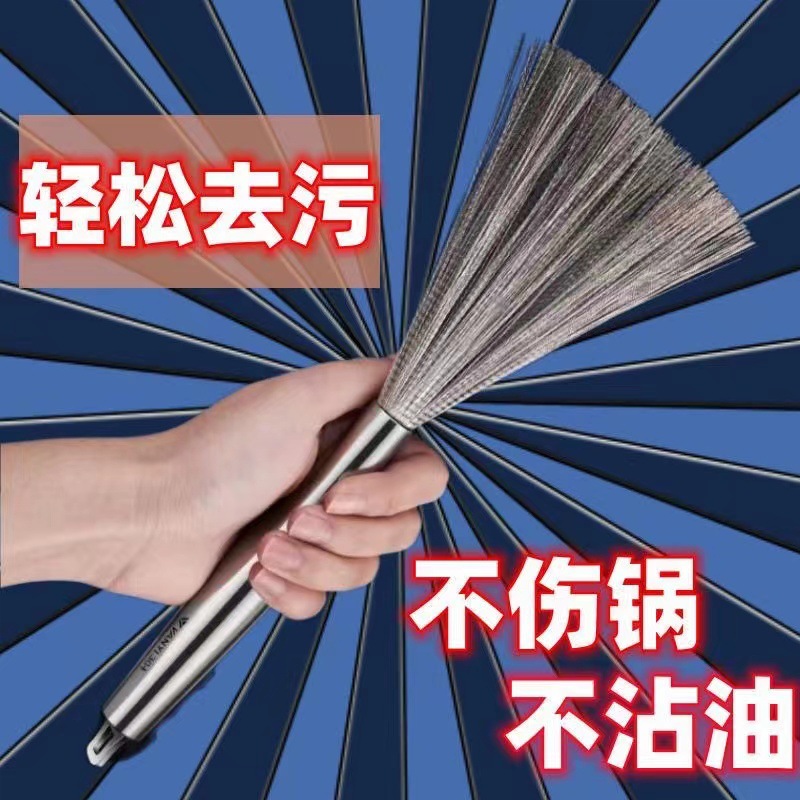 ステンレスの鍋は家庭用のワイヤーをブラシします。台所は鍋を傷つけません。
