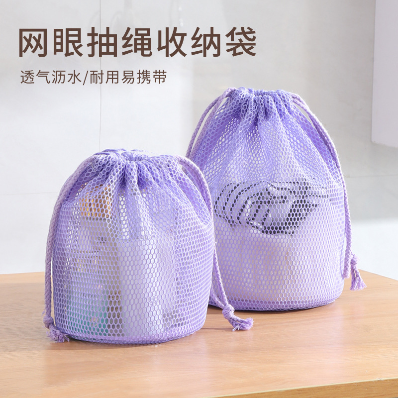 ひも引き化粧バッグ携帯型ネット袋透明水切り収納袋旅行洗面バッグ水泳風呂バッグ
