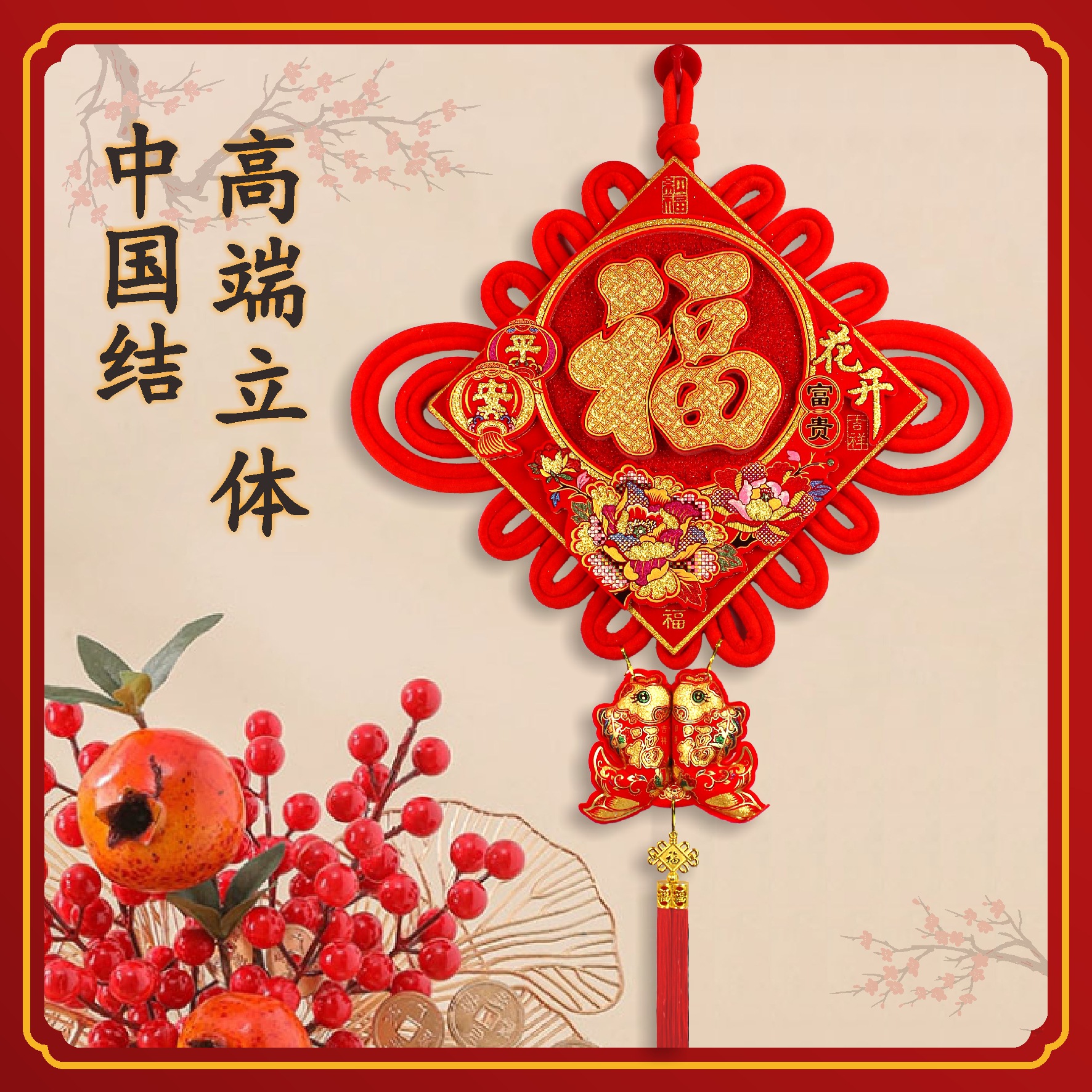 福の字の中国の結び目の大きいサイズのテレビの背景の壁の客間の玄関は家に入ります新年の春節の喬迁の喜びの装飾