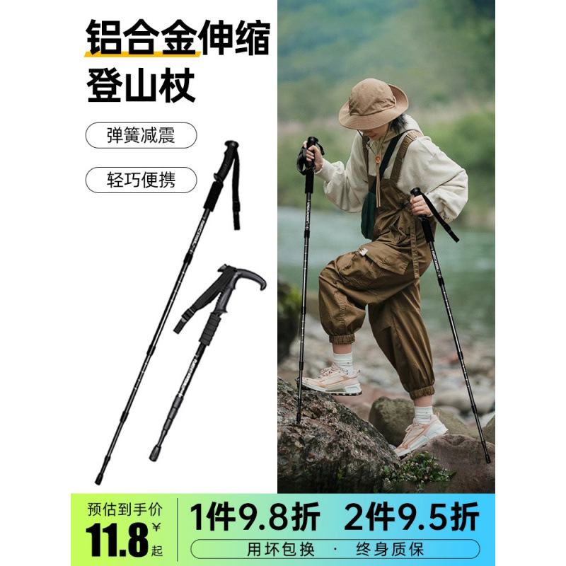 登山杖のステッキの炭素が伸縮して松葉杖を折りたたみます。