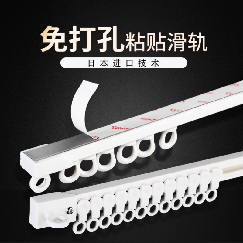 スライドレールはカーテンのレールを遮ります。穴を開けないでカーテンを取り付けます。