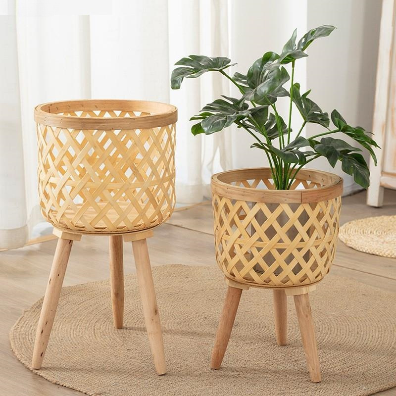 木製高花棚床置き式インテリアリビングルーム飾り緑ロリ植木鉢北欧クリエイティブ籐編み竹編み花バスケット