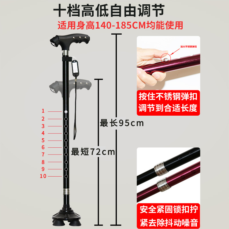 松葉杖四脚滑り止め松葉杖アルミ合金伸縮軽やかな松葉杖多機能松葉杖ライト付き調新