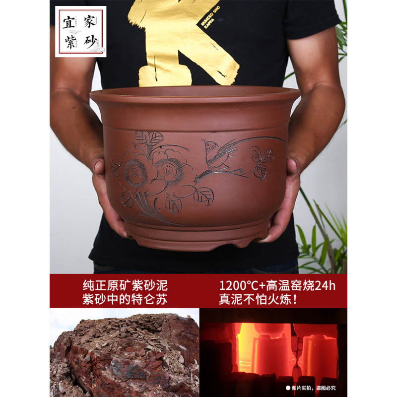 宜興紫砂植木鉢陶磁器植木鉢家庭用大口径盆特大サイズ客間君子蘭陶盆