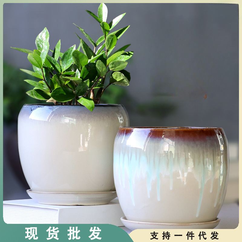 植木鉢陶磁器の大型家庭用トレー付きの個性シンプルな卵型緑植緑羅吊蘭小多肉植木鉢