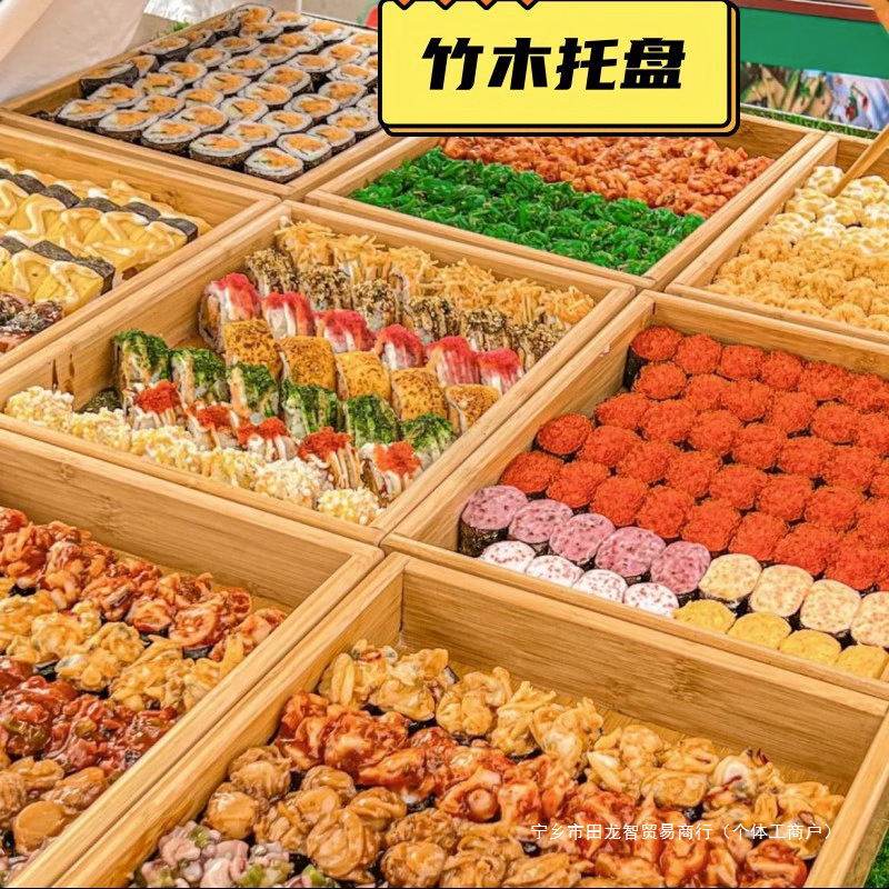一円寿司の屋台は日本式の木製パンの展示箱を押すことができます。