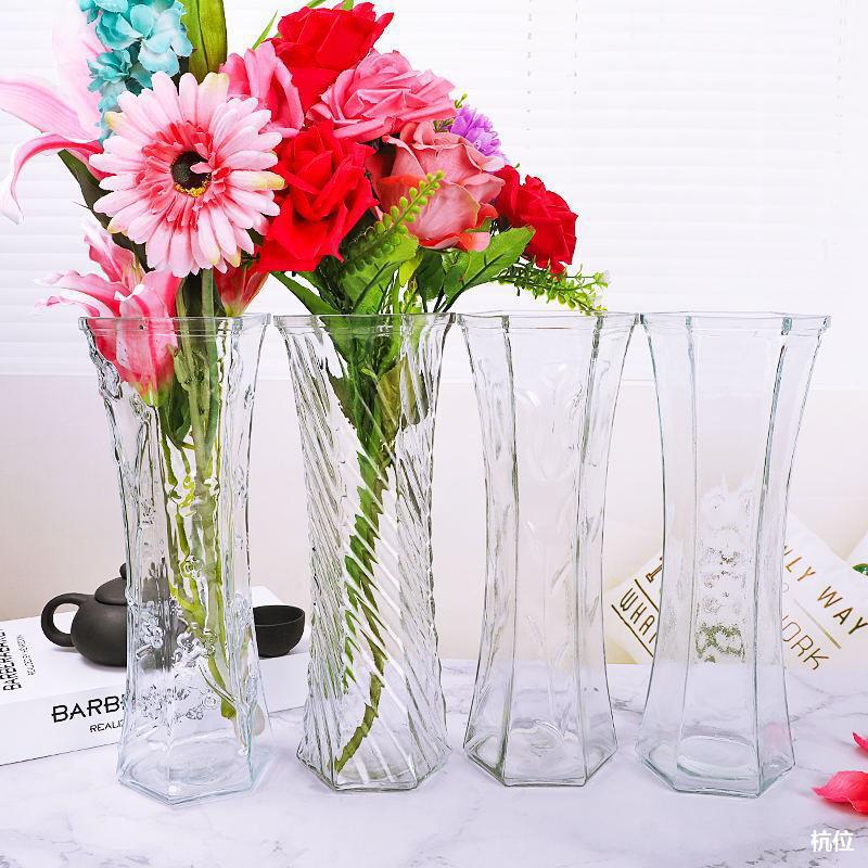六角透明ガラス花瓶大サイズの富貴竹百合水培花瓶を提供します。