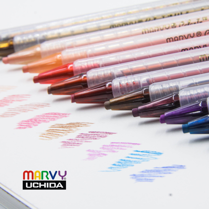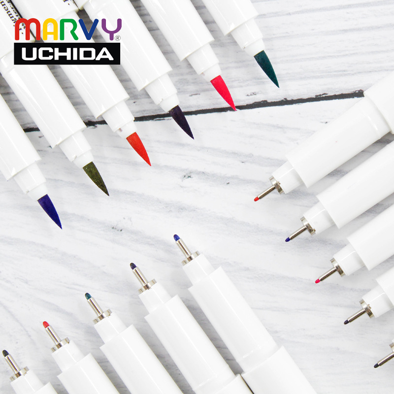 日本marvy内田美輝針管ペン防水線筆茶色赤色美術生専用線筆