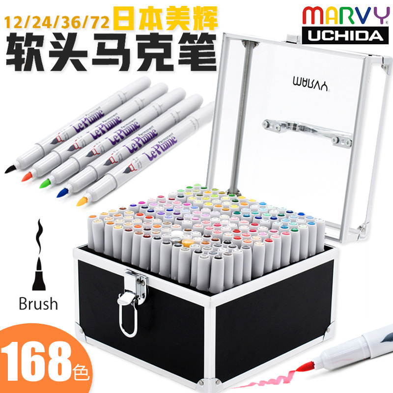 日本美輝ソフトヘッドマークペンセット絵画学生アニメ12/24/36/48/168色セット