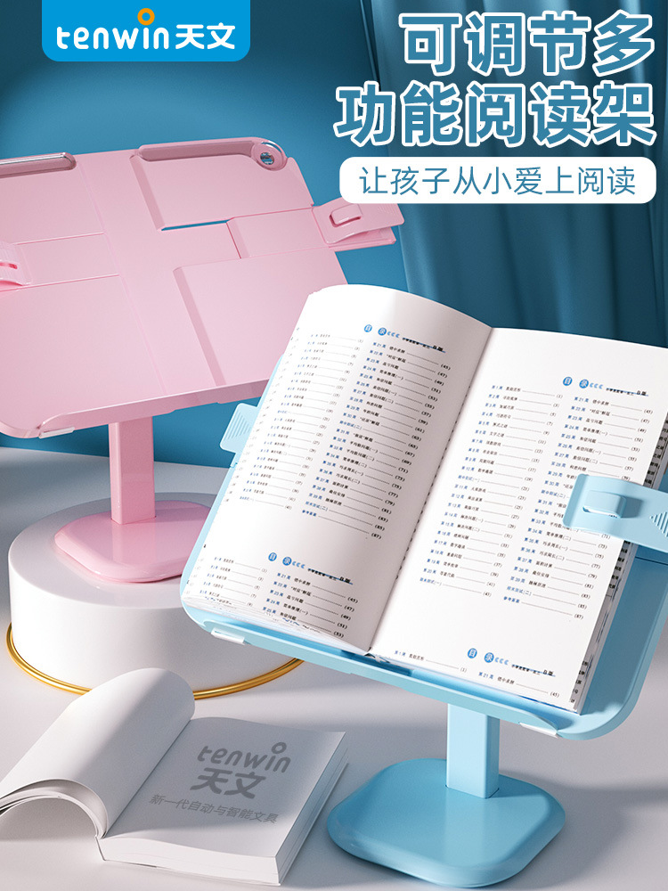 天文読書棚の読書スタンドは昇降伸縮を調節して本棚の固定教科書を読むことができます。