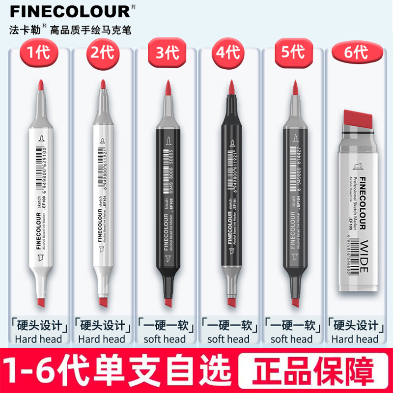 ファカルマークペンは一本で自分で一世代二世代三世代四世代の手描き漫画の肌色アルコールの油性の柔らかい頭を選びます。