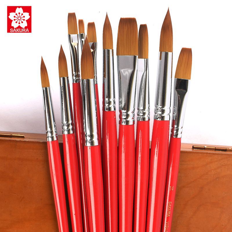 日本桜水チョークナイロン水彩画ペンアクリル顔料油絵ペン水溶色鉛丸首平頭毛筆