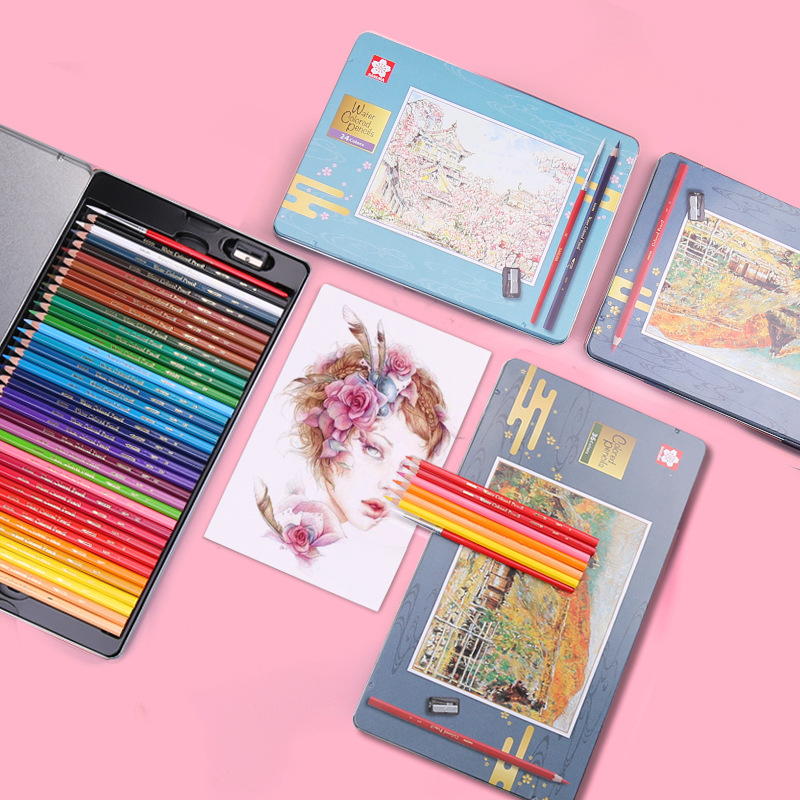 サクラ水溶性色铅笔セット油性色铅セット鉄ボックスプロデザイン手描き学生アート絵画