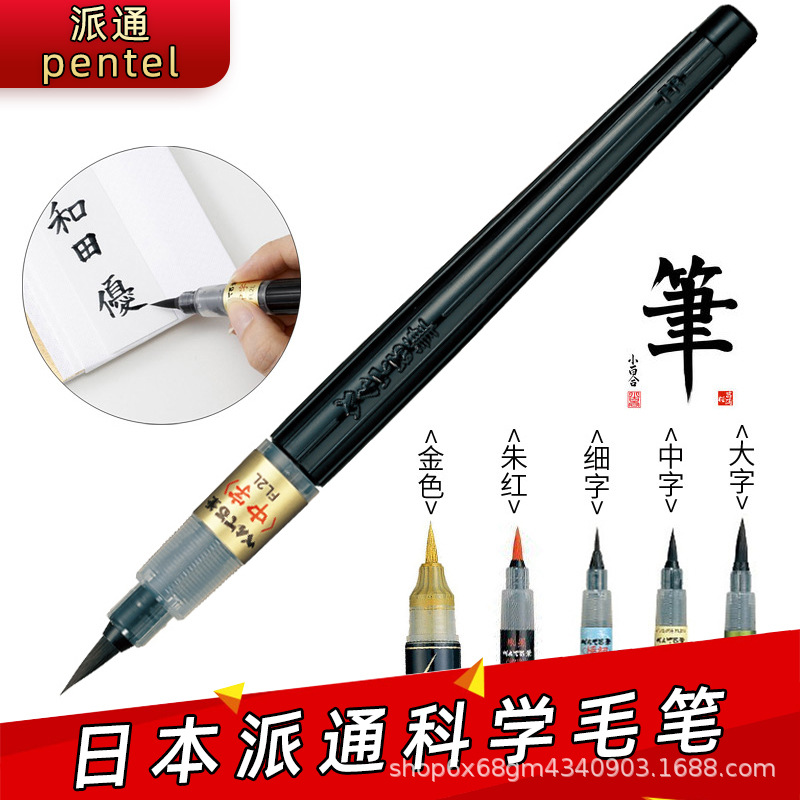派通携帯型科学毛筆黒カラー書道軟頭筆大中小楷字金色写経毛筆