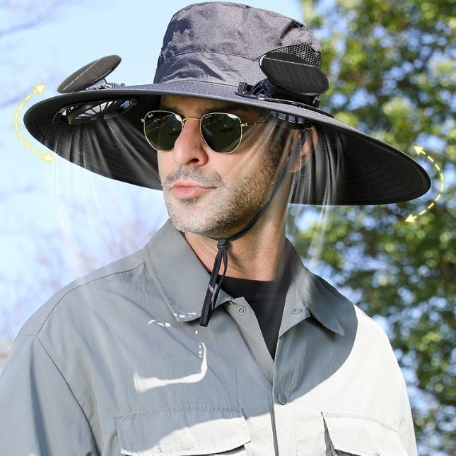 厳選されたクロスボーダーソーラーファンハット、サマーハット、釣り用日焼け止め、サンシェード、エアコン、漁師用紫外線防止メンズハット