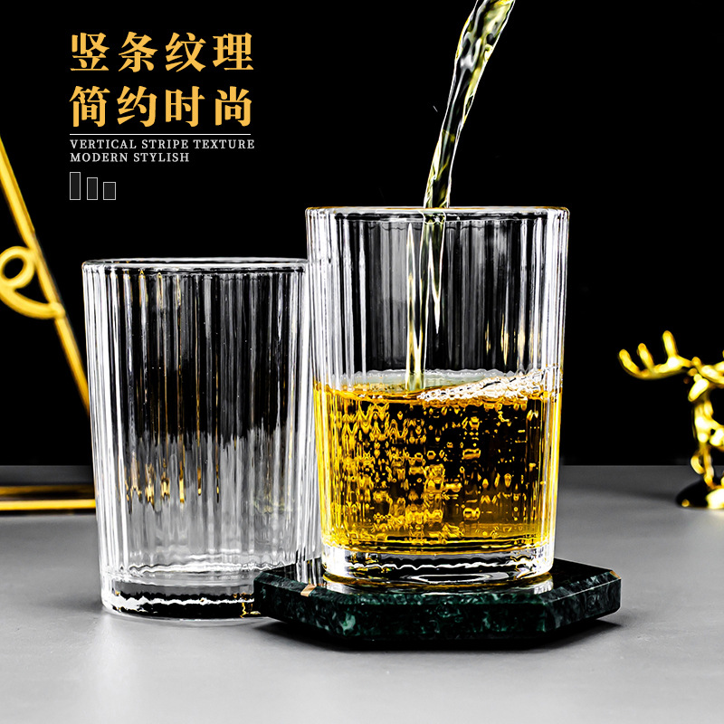インシンプルなスタイルの縦模様のガラス日本ワイングラス耐熱ドリンクカップ透明レトロコーヒーカップホームカップ