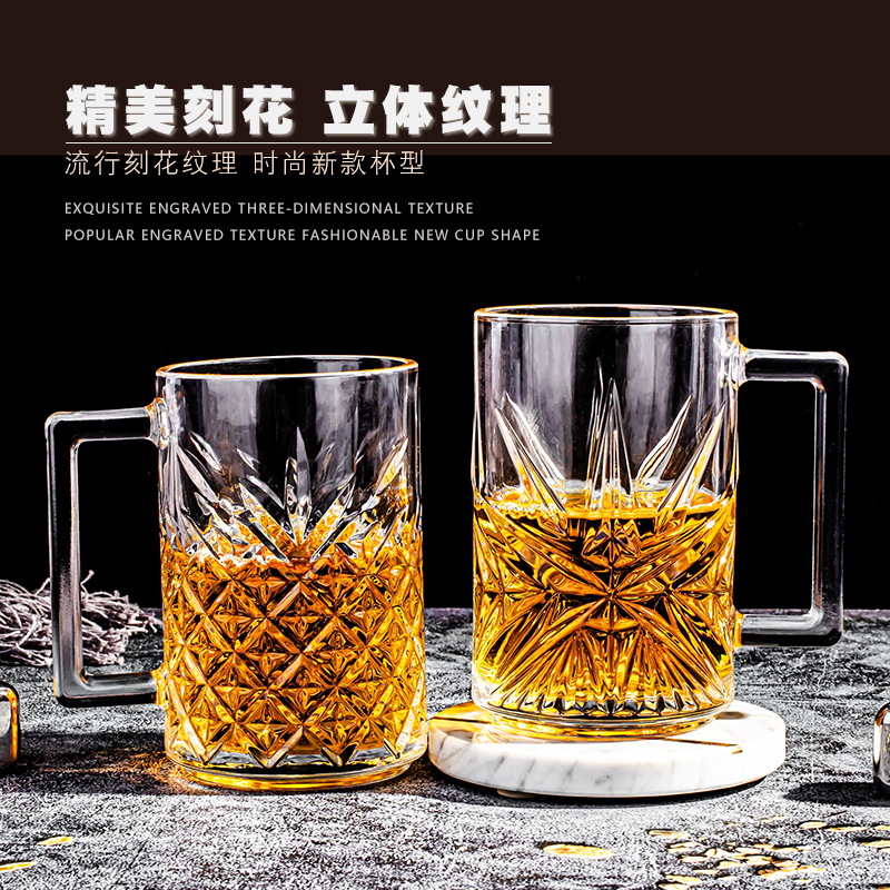新シリーズガラス飲食具星耀輝くガラスハンドルカップ水カップウイスキービールカップコーヒーカップ
