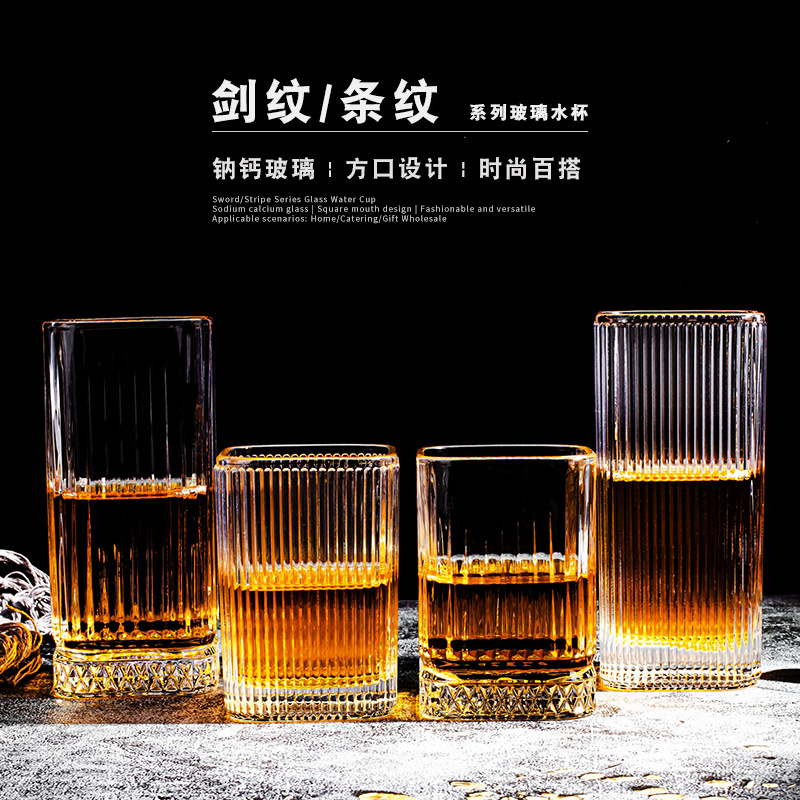 剣紋シリーズウイスキー円形ネット赤グラスバー用コップ家庭用ストライプビールコップ飲料コップ