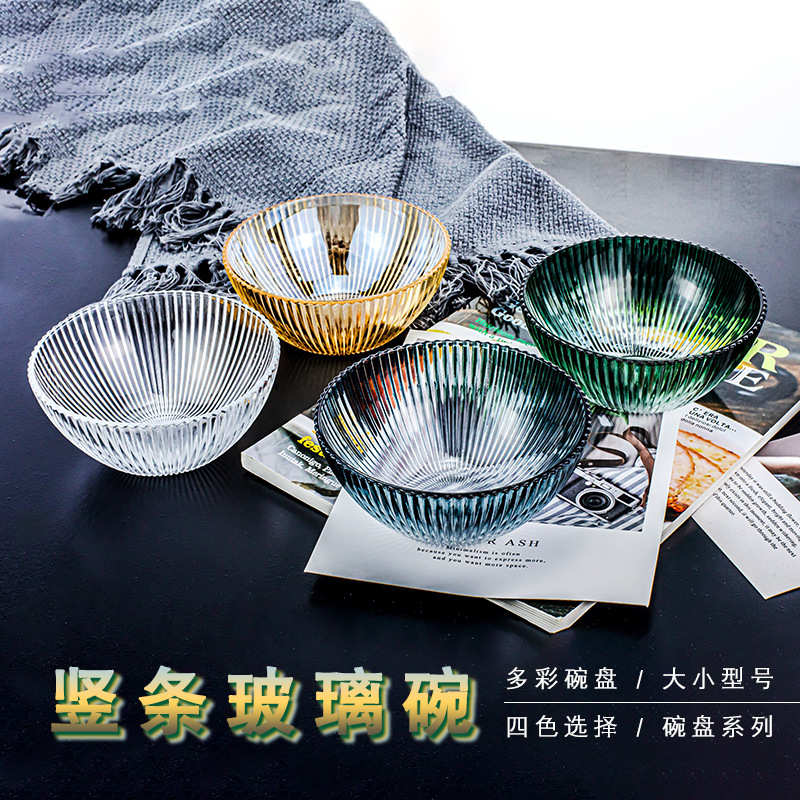 クリエイティブ縦紋グラスボウルセット家庭用カップサラダボウル自慢ボウルシリーズオープンプレゼント