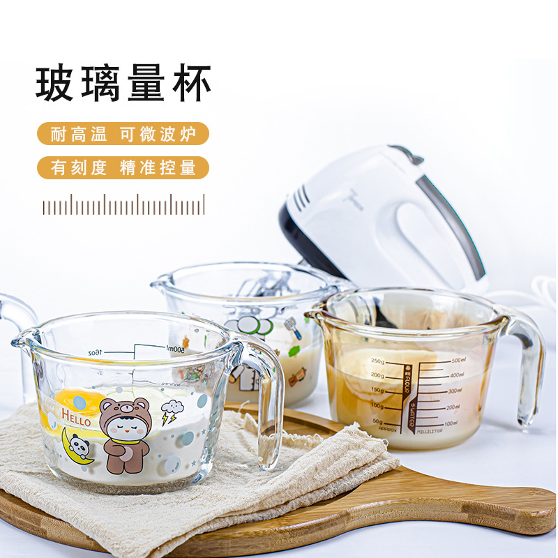 アニメガラス計量カップスケール付き牛乳朝食カップ大容量食品級耐高温家庭用キッチンベーキングカップ