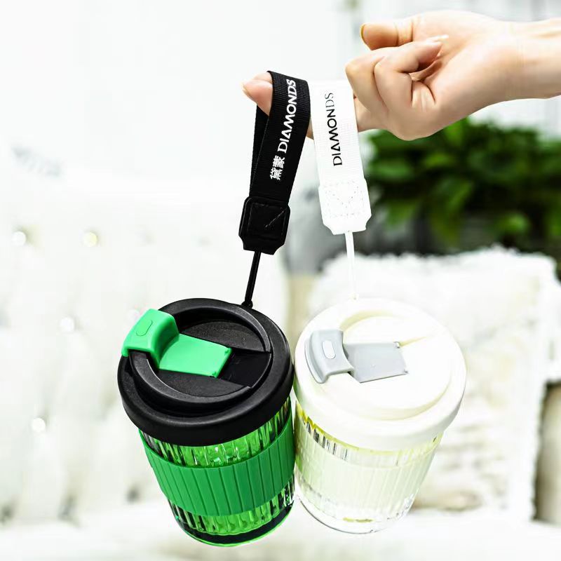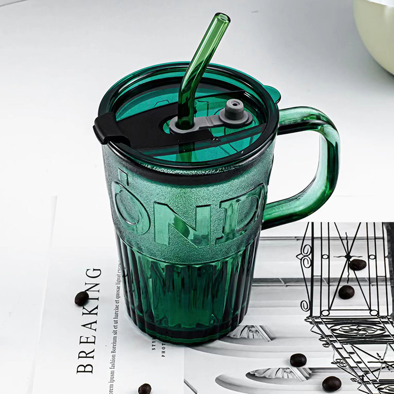 角型高ホウケイ酸ガラスpp蓋ins風ストローカップ蓋付きミルクティー家庭用大容量冷たい飲料ジュースカップ