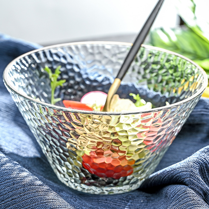 新商品創意闘状日本式ガラス碗滑り止め筋目家庭用v型サラダ碗果物碗金辺果物と野菜碗