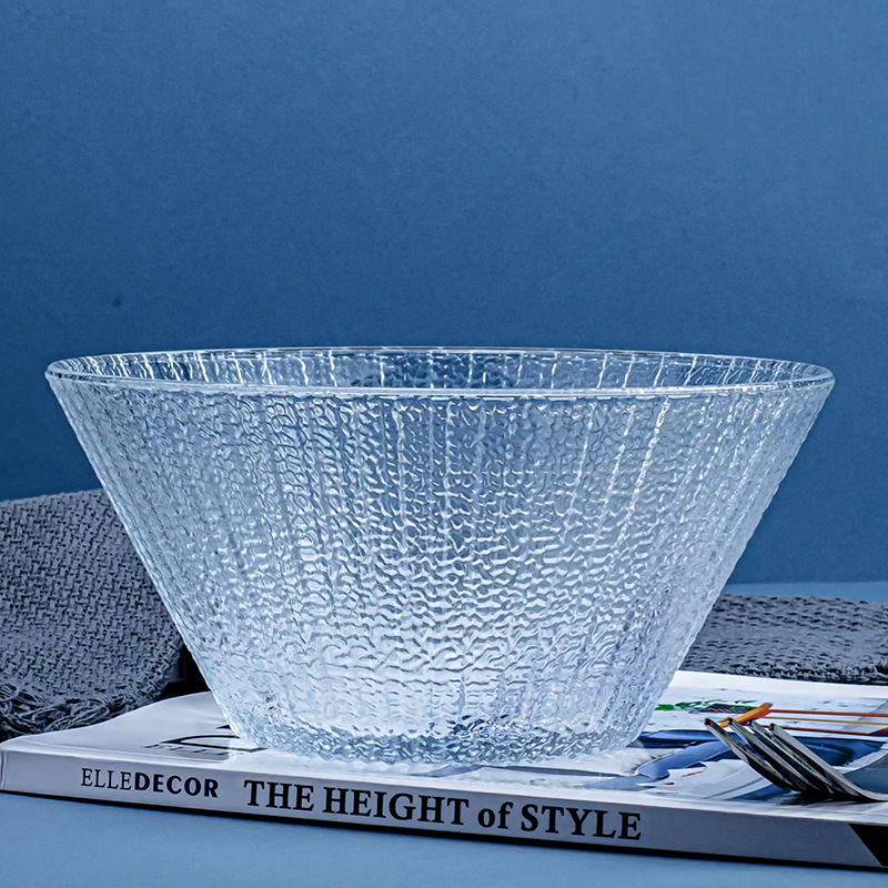 厚いマイクロ波ハンマーガラスボウル透明サラダボウル北欧ins風果物デザートボウルv型果物野菜ボウル