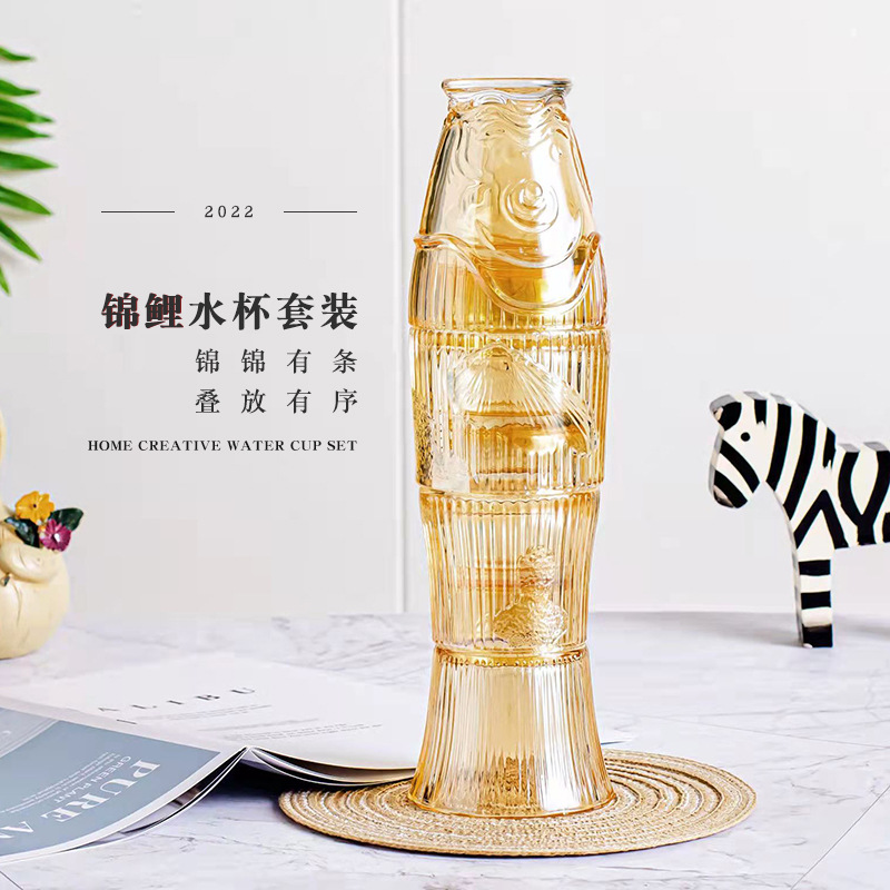 クリエイティブな新しいグラス錦鯉セットカップ家庭用カップ個性魚カップスタックカップ2022ネットレッドギフトセット
