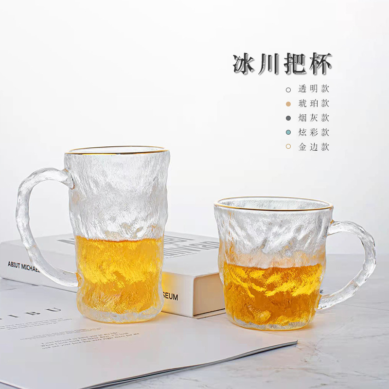 新型ins風氷河は杯の多彩な琥珀の金の辺の氷河の杯のビールの杯のグラスをついでにコップを飲みます。