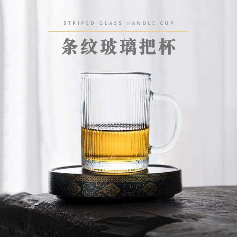 ガラスカップハンドル付き家庭用ガラス花カップトランペットビールマギビングルームコーヒーカップお茶カップ
