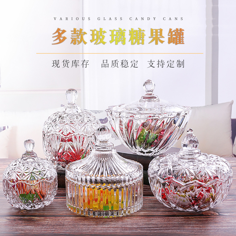 複数の現物ガラスキャンディー缶キャンディーケース蓋付きキャンディーカップガラスケース収納ケースは直接輸出できる
