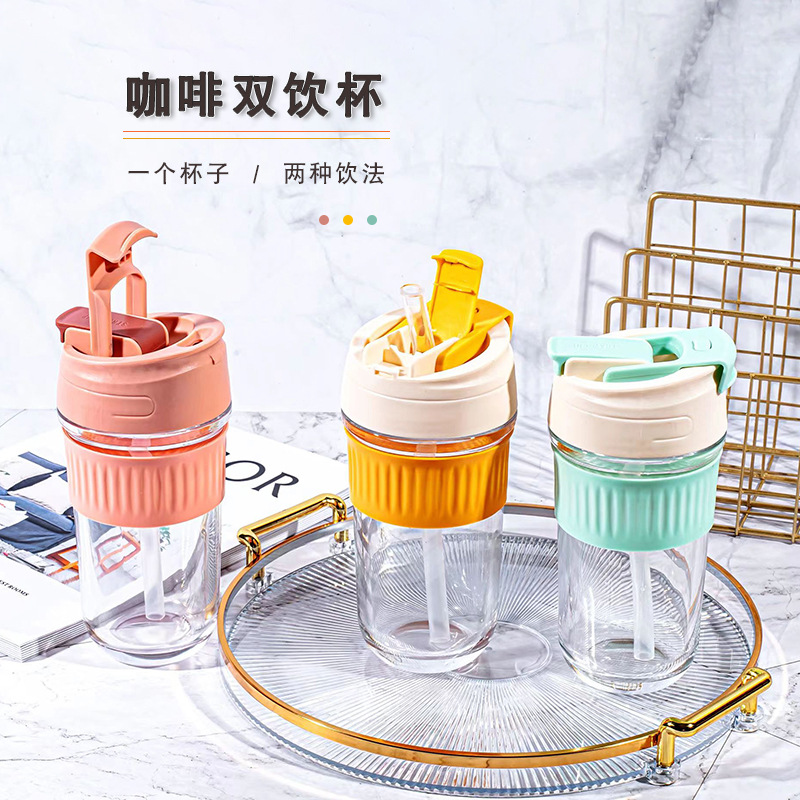 高颜値直飲ストローカップ双飲グラスシンプル携帯かわいい牛乳コーヒーカップ販売促進ギフトカップ