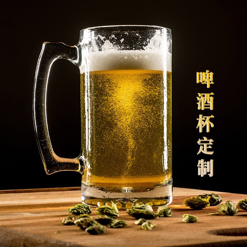 カスタムロゴ卸売りガラスビールグラスは、ビールカップバーの飲食用ジュースカップ広告カップを厚く持っている