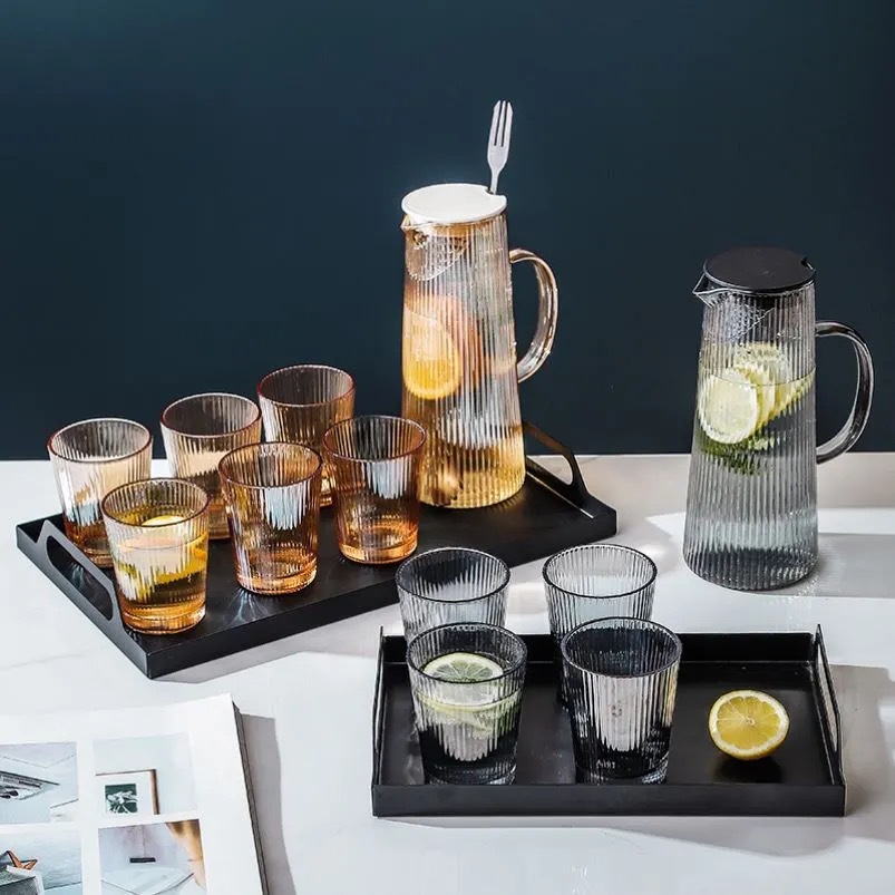 夏の高温に耐えて水を飲むガラスのコップのセットの縦紋の水具の家庭用の水を飲むコップの瓶のセットの冷蔵庫は適用します。