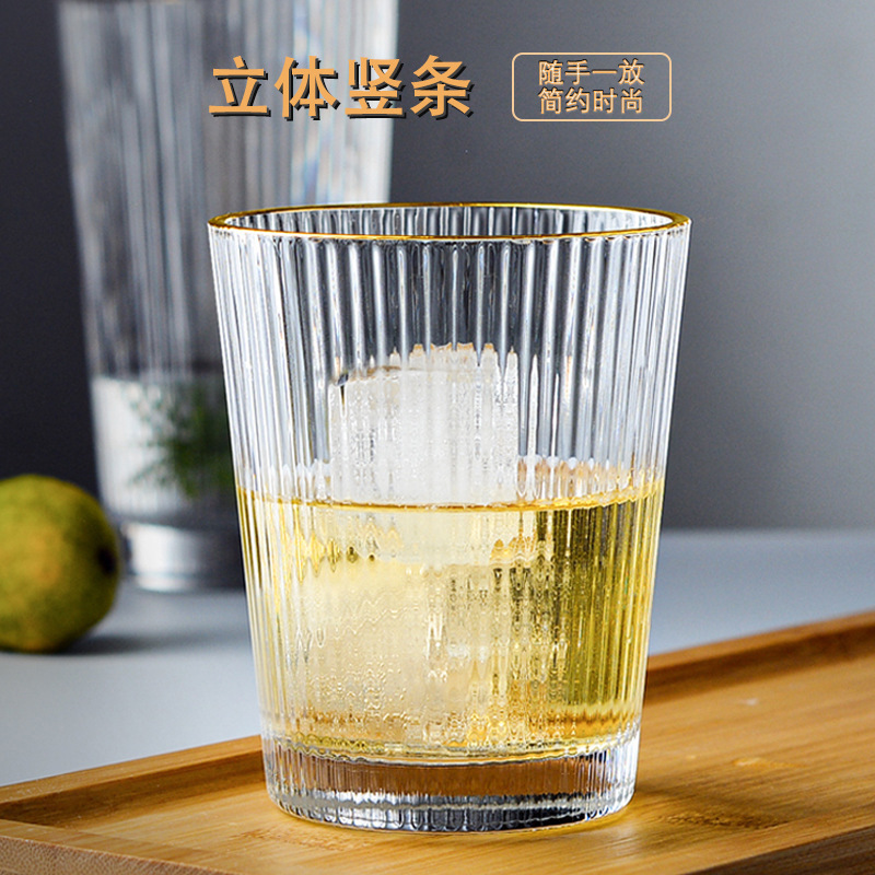 シンプルでファッショナブルなインスタイルの厚みのある縦縞のドリンクカップ、家庭用ビールカップ、便利な縦縞のガラスカップセット