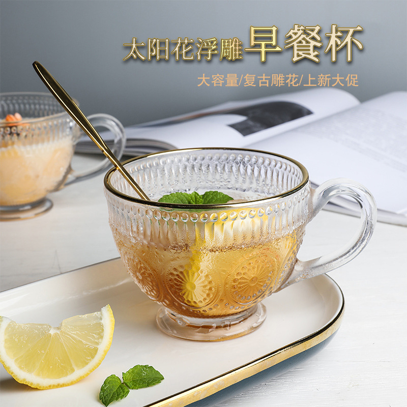 透明グラス朝食カップコーヒー茶器卸売り牛乳カップ花茶カップ丸趣味シングルカップ電子レンジ加熱