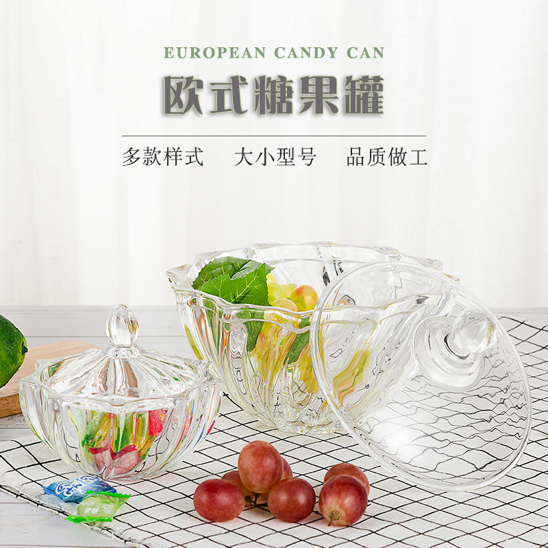 ヨーロッパのチェコの水晶の風格の創意の新型の透明なガラスは蓋の家庭用の乾燥した果物のキャンディーの缶の貯蔵箱を持ちます。