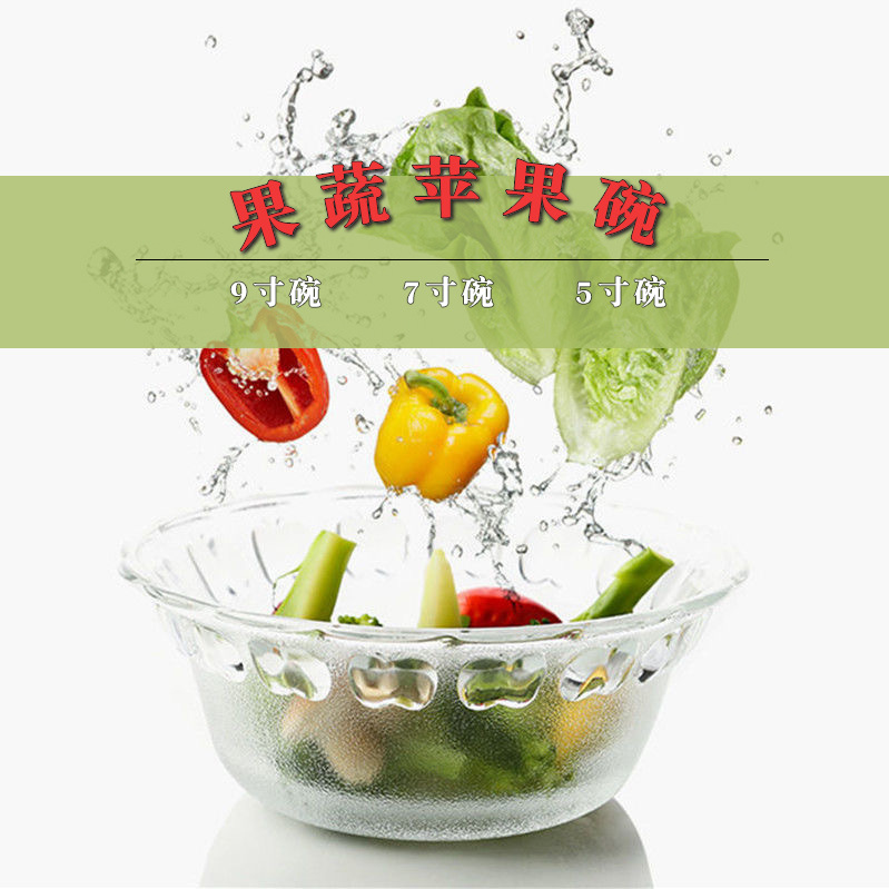 ガラスサラダボウル5/7/9インチリンゴボウル田園風フロスト果物ボウル氷粉ガラスボウル現物直ロット