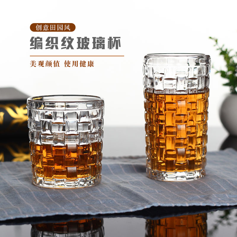 創意的な編み物工芸グラスジュース牛乳カップ個性竹編みウイスキーカップガラスコーヒーカップ