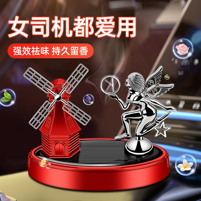 車の装飾品の高級な太陽エネルギーの回転の天使の風車の車の香薫の女性の車内の精油の装飾用品