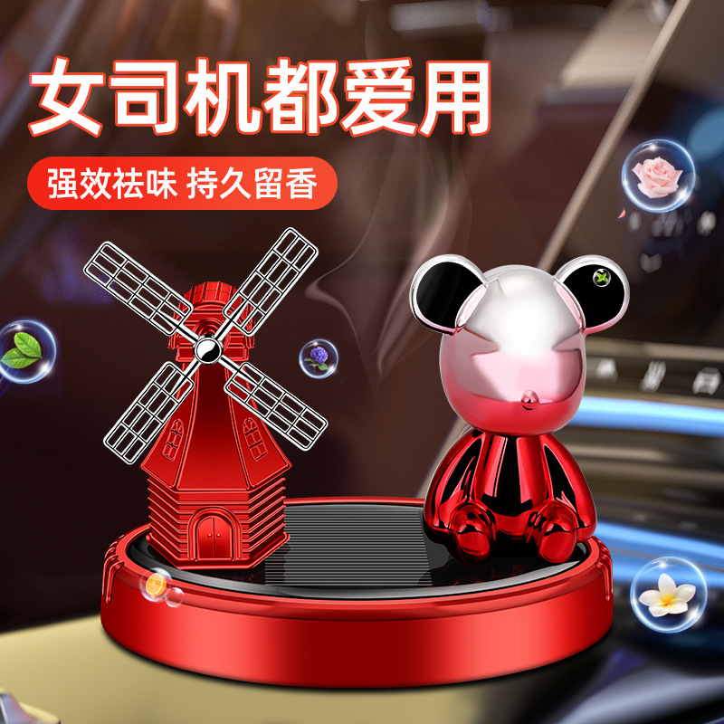 車の香水の車の風車の香薫の車内は異臭の持続的な香りの香りの薄い香りの太陽エネルギーの漫画の熊の置物を取り除きます。