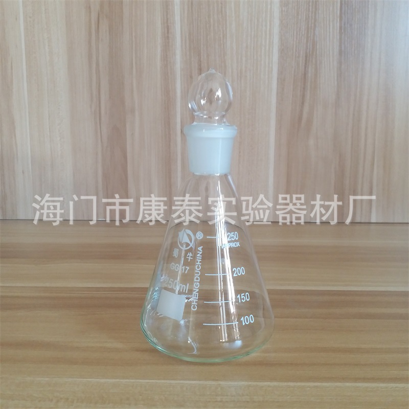 工場価格卸売り口具栓三角フラスコ高ホウ素シリコン標準口錐形瓶100 250 500ml