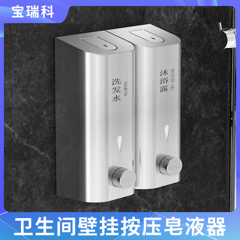 ホテル家庭用浴室ステンレス壁掛け式手動ダブルヘッド入浴剤ボトルソープディスペンサー手洗い器