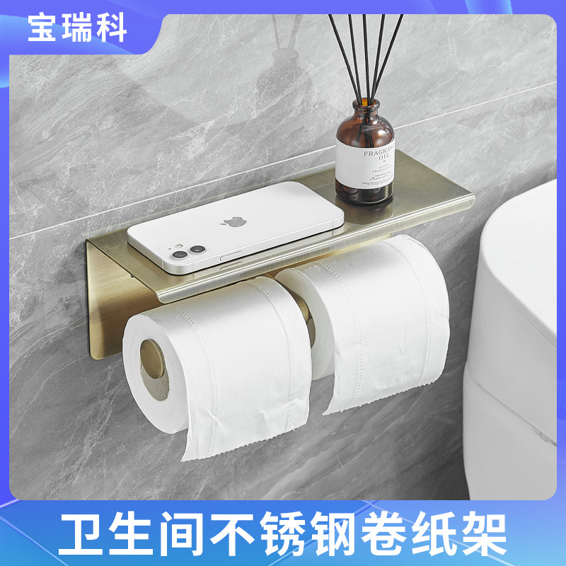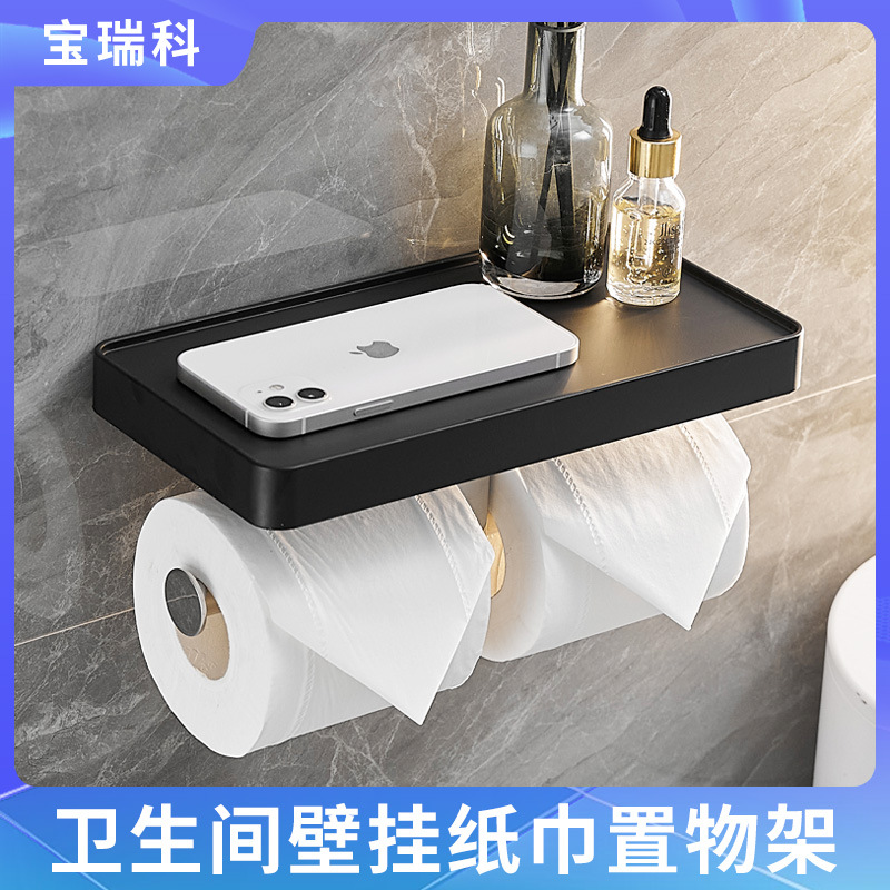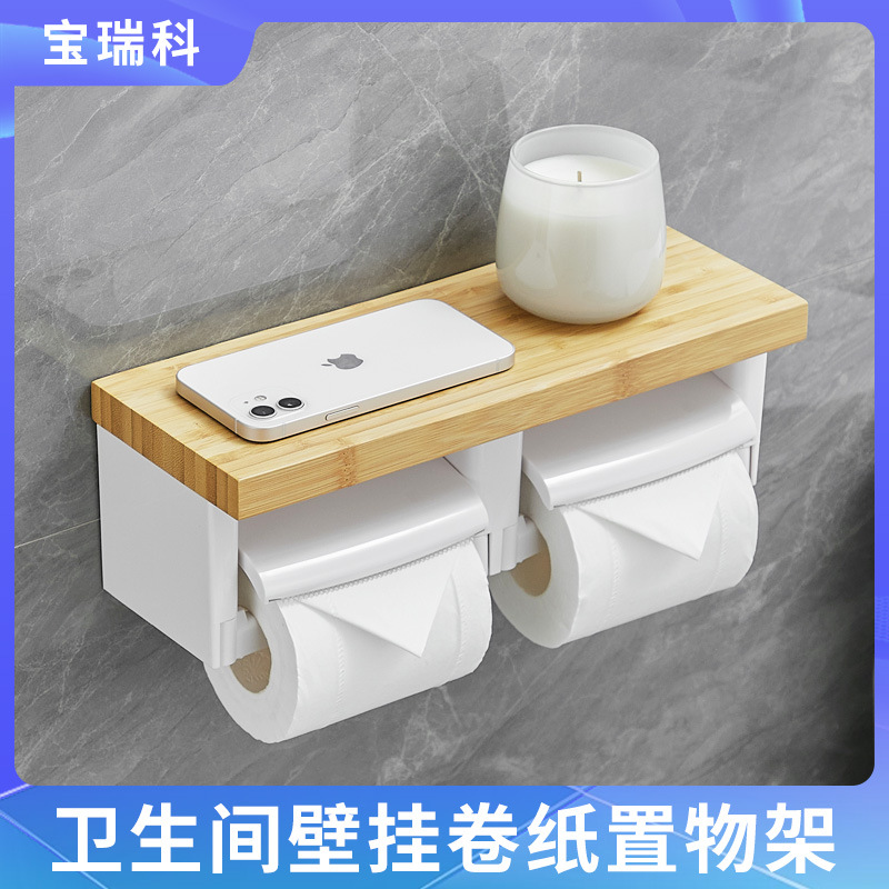 穴を開けない実木トイレットペーパー箱二重巻き手紙トイレ壁掛け携帯電話二重置物ティッシュ棚